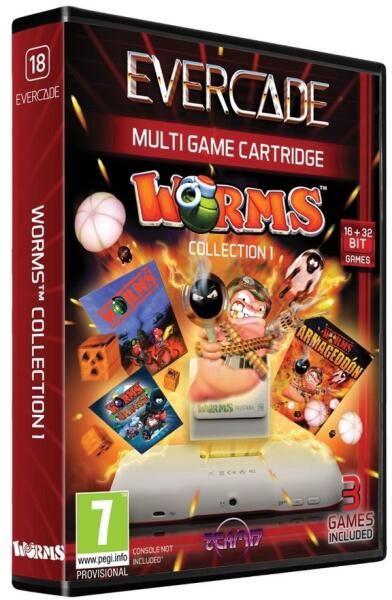3 játék a világhírű Worms franchise-ból. Worms Worms egy kritikusok által elismert körökre osztott stratégiai játék. Ez volt az első a Worms játékok sorozatában, a Worms akkoriban forradalmi volt a véletlenszerűen generált és teljesen elpusztítható tájak miatt, amelyeket a játék alkalmaz, így egy robbanás hatalmas krátert hagy maga után. Worms Armageddon A Worms Armageddon egy világhírű, kritikusok által is elismert stratégiai játék. Dicsérve stílusos és továbbfejlesztett grafikájáért, valamint kibővített játékmenetéért. Még mindig minden idők egyik legjobb stratégiai és Worms játékának titulálják. Worms Blast A Worms Blast színes blokkokból álló hatszögletű rácsból áll a képernyő tetején, míg a játékos karaktere egy vízben úszó hajón ül egy páncélököllel. Kompatibilis az Evercade EXP / VS és Hyper Mega Tech konzolokkal. Tartalmazott játékok: